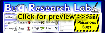 A set of printable resources for your ‘Bug Research Lab’ role-play area. It includes a banner, labels with pictures, animal observation form and warning signs.