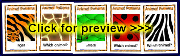 A colourful set of poster showing animal skin patterns. Great for displays and discussion. Can also be used for an animal guessing or matching activity.