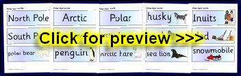 A set of printable word and picture cards linked to the Polar regions.