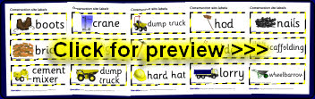 A set of 15 word and picture labels linked to construction sites. These are perfect for use in a classroom or outdoor role-play area.