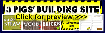 A fun set of resources including authentic construction signs together with some less-authentic signs (such as ‘Beware of the wolf’!). Signs for bricks, wood and straw as well as ‘Please wear helmets’. Pack also includes sheets for children to design buildings and list the materials they need.