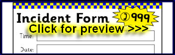 A printable incident form to encourage writing from pupils when role-playing as police.