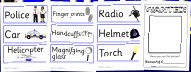 A very useful group of printable resources for use in a Police Station role-play are. Includes a re-sizable banner image and printable wanted posters. Also included is a set of labels with pictures plus a ‘make a disguise’ set where children can decorate the faces with various disguises.