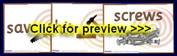 A useful group of signs for use in a Workshop Area. The set includes such words as ‘screw driver’, ‘saw’, ‘hammer’, ‘turn’, ‘nails’, ‘hit’ and more, all with accompanying pictures.