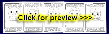 Printable wanted poster writing frames with a superhero theme. Children can write descriptions of super heroes and what reward can be claimed.