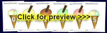The numbers 0-20 presented on different flavour ice-creams. Great for use as part of a summer or holiday topic.
