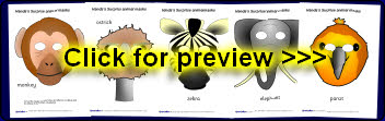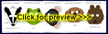 A fun set of 5 printable role-play masks for use in your role-play area.