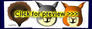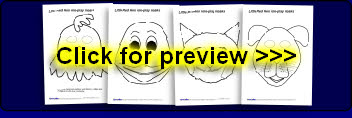 Simple printable masks (colour and b&w) for use in role-play or for retelling a story/rhyme. Simply cut out the eyes and attach a lollipop stick as a handle.