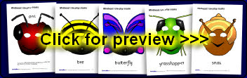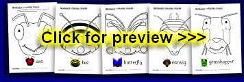 A useful group of minibeast printable masks for role-play. Includes minibeasts such as ladybird, grasshopper, bee, snail and more. Simply print out, laminate, cut out and attach to lollipop sticks.