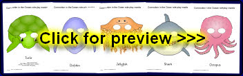 A fun set of 9 role-play masks with sea creatures such as clown fish, shark, ray, jellyfish, starfish, puffer fish, octopus and more - for children to colour themselves.