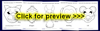 Chinese New Year animal masks - b&w (Ref: SB2942)