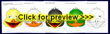 A fun set of printable cartoon duck masks for role-play. Simply print out, laminate, cut out and attach to lollipop sticks.