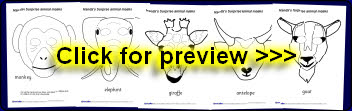 A fun set of printable jungle and safari animal masks for role-play. Simply print out for children to colour, laminate, cut out and attach to lollipop sticks.