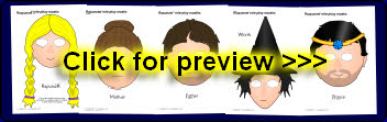 A set of printable cut-out character masks for role-playing the story of The Enormous Turnip.