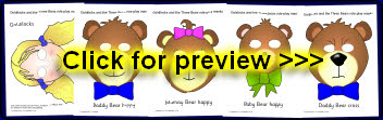 Simple printable masks featuring characters from the Goldilocks story.