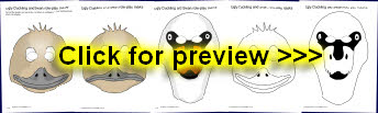 Simple printable masks (colour and b&w) for use in role-play or for retelling the story of the Ugly Duckling. Simply cut out the eyes and attach a lollipop stick as a handle.