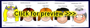 A set of printable cut-out masks for role-playing the story of Cinderella. 11 story characters are included - simply cut out the eye-holes, laminate and attach to a stick for children’s role-play or to retell the story.