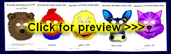 Simple printable masks featuring the animals from ‘Brown Bear, Brown Bear What Do You See?’ by Bill Martin, Jr.