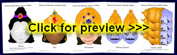 A fun set of black and white role-play masks for telling the Hindu story of ‘Rama and Sita’.