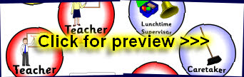Simple printable badges for different roles in a school role-play situation. Print, laminate and thread with string to go around children’s necks.