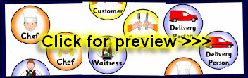 A useful set of printable resources to use in a Pizza Delivery role-play area. The downloadable pack includes re-sizable label images, a banner image, a couple of posters and some writing aids for menus and taking orders.