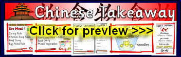 A set of printable resources for your Chinese Takeaway role-play area. Includes a banner, posters and set meals, opening times and orders template.