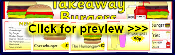 A set of printable resources for your classroom Burger Takeaway role-play area. Includes banners, food posters, labels and more.