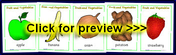 A set of printable supermarket food including common fruit and vegetables. Ideal for use in role-play situations.