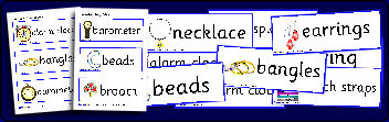 A very useful set of 23 labels with pictures for use in your Jewellery Shop role-play area. The download includes re-sizable JPG images (which can be enlarge or shrunk to suit your needs) and also a PDF document with the labels pre-arranged 3-to-a-page.