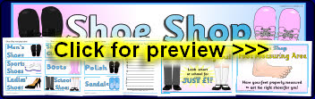 A set of useful signs and labels for use in your classroom Shoe Shop role-play area together with A4 posters, a ‘Clothes Shop’ banner, foot measuring sheet and more.