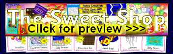 A set of printable posters and a banner for your Sweet Shop role-play area.