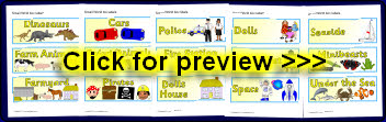 A useful group of signs for use in your classroom Small World Area. The set includes words such as ‘cars’, ‘people’, ‘buildings’, and ‘dolls house’, all with accompanying pictures.