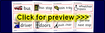 Bus role-play labels (Ref: SB635) A set of labels which can be used in your Bus role-play area. These also complement the Bus Station role-play pack well.