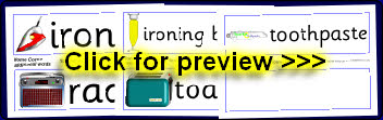 A set of printable labels and words with accompanying pictures for use in your Home Corner role-play area or for a topic on homes. Includes words for kitchen, lounge, bedroom and bathroom.