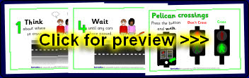 9 A4 printable posters about crossing the road safely.
