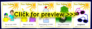 A set of simple posters to remind children of staying safe in the sun.