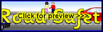 A set of cards sized 11cm by 11cm designed for use with a Pixie programmable robot. The cards feature items linked to road safety.