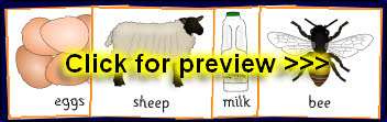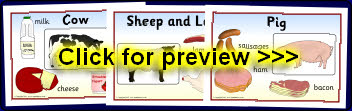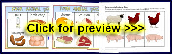 A set of printable cards for a matching activity where children can match the animals to their produce. Great for promoting topic-related discussion.