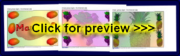 Portrait and landscape fruit-themed A4 page borders. Includes editable Microsoft Word templates as well as resizable JPG images.