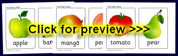 A set of 17 printable cards (6 per A4 sheet) that can be used for games and activities linked to a topic on fruit.