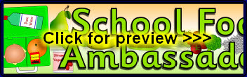 Colourful banners with the titles, ‘School Food Ambassadors’ and ‘Our Food Ambassadors’.