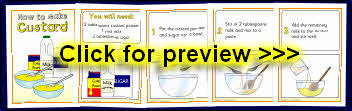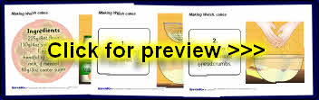 A useful set of simple visual aids showing how to make fruit jelly in 6 steps. It includes instructional text and a list of ingredients with accompanying pictures. These could be laminated and used when actually making the jelly or used for classroom displays and discussion afterwards.
