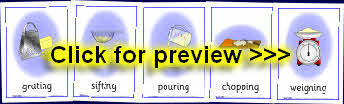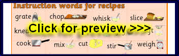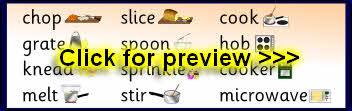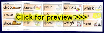 Printable word and picture cards linked to cooking. Ideal for creating a word bank when children are writing recipes.