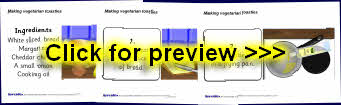 A useful set of simple visual aids showing how to make vegetarian toasties in 9 steps. It includes instructional text and a list of ingredients. Also perfect for use in a classroom display.