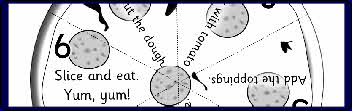 A fun sheet where children order the instructions on the pizza slices and stick together to make their own pizza! (Black and white for easy photocopying).