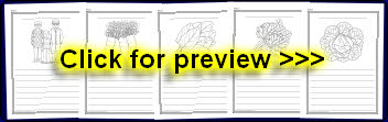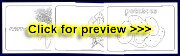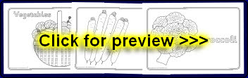 A set of simple printable sheets featuring images of vegetables from the popular story for children to colour along with writing lines for writing.