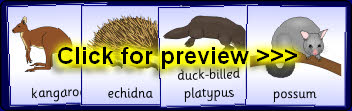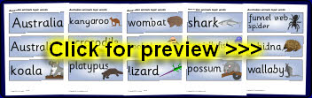 A set of word and picture cards with various Australian animals. Great for classroom displays, word banks or laminating for other topic-related activities.