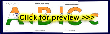 A PDF document with 26 Indian flag-themed alphabet letters (upper and lowercase). These are great for printing and cutting out for use on displays.