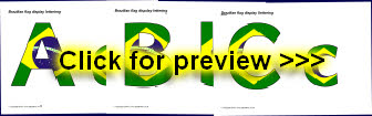 A PDF document with 26 Brazilian flag-themed alphabet letters (upper and lowercase). These are great for printing and cutting out for use on displays.
