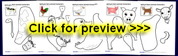 Split-pin farm animal characters - b&w (Ref: SB2886)